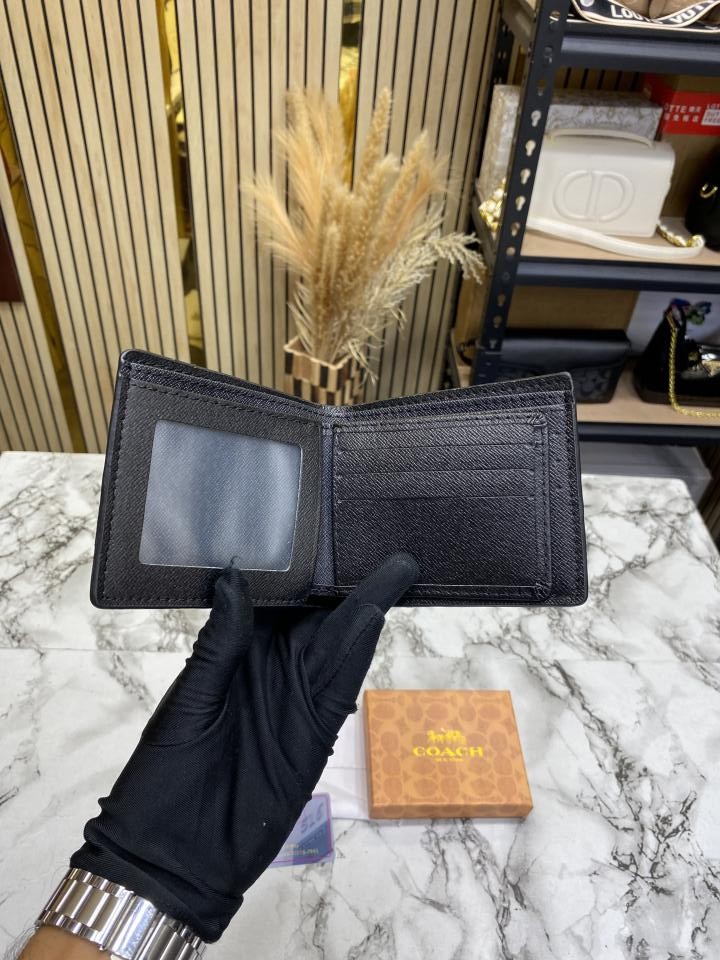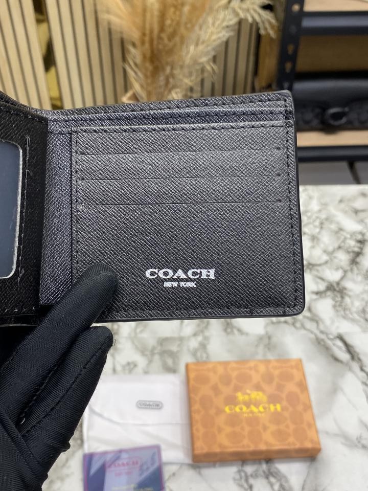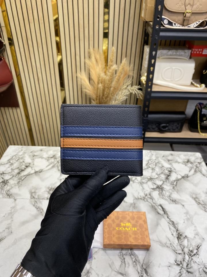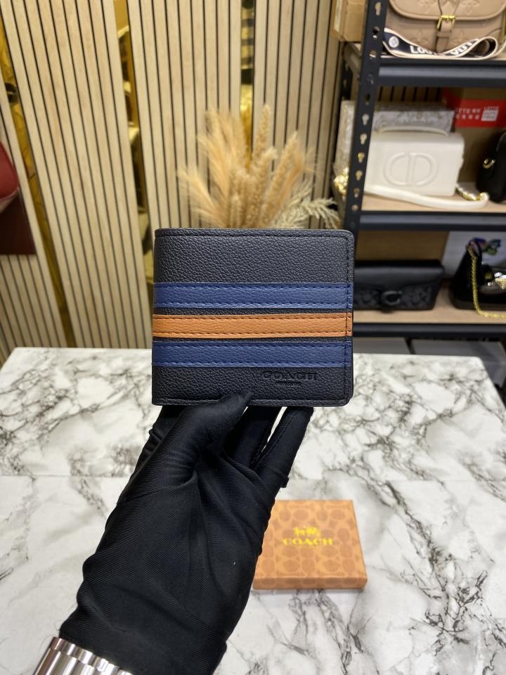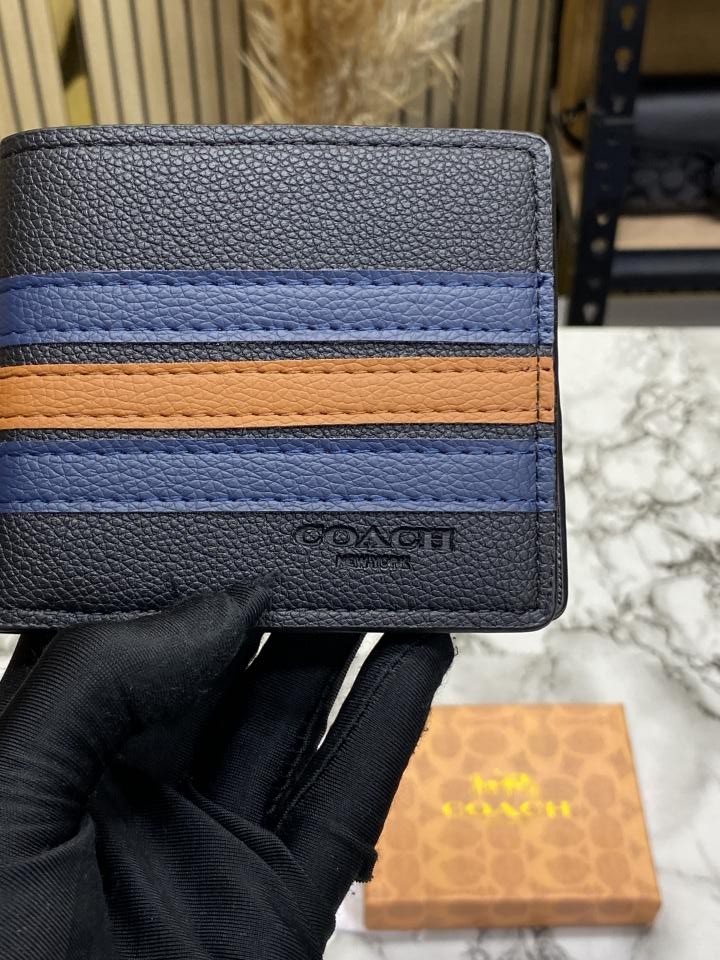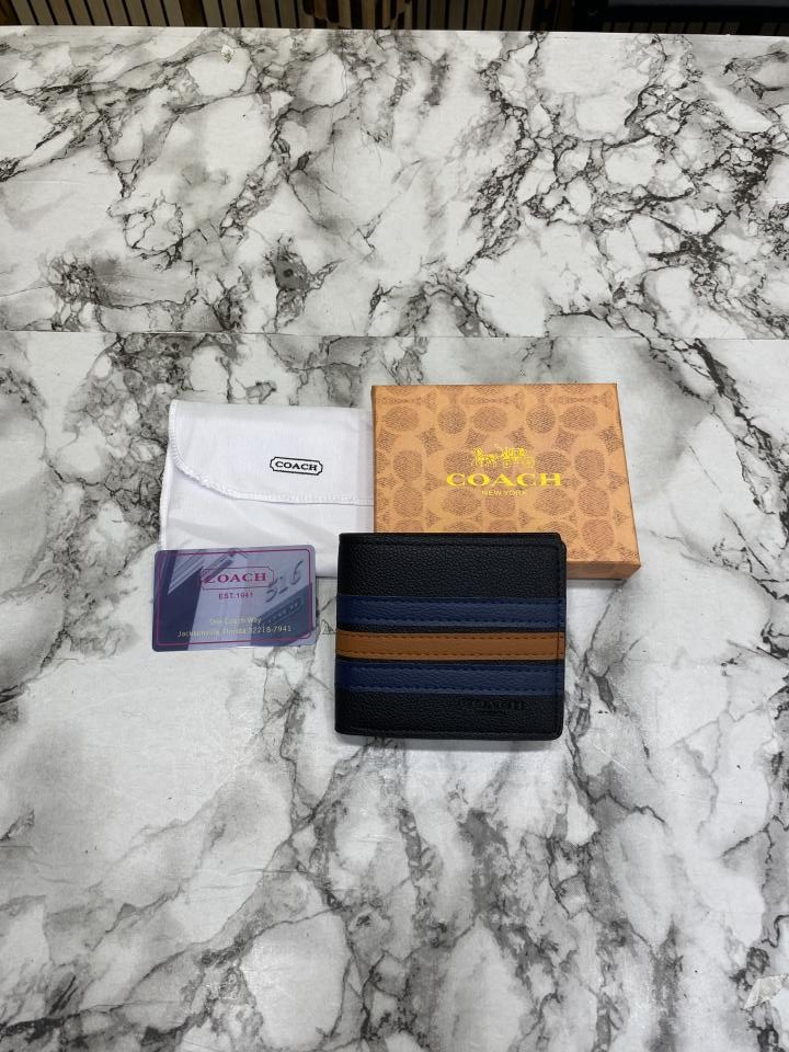 Coac_h Signature Stripe Leather Bi-fold Wallet With Box Including Card (60223)