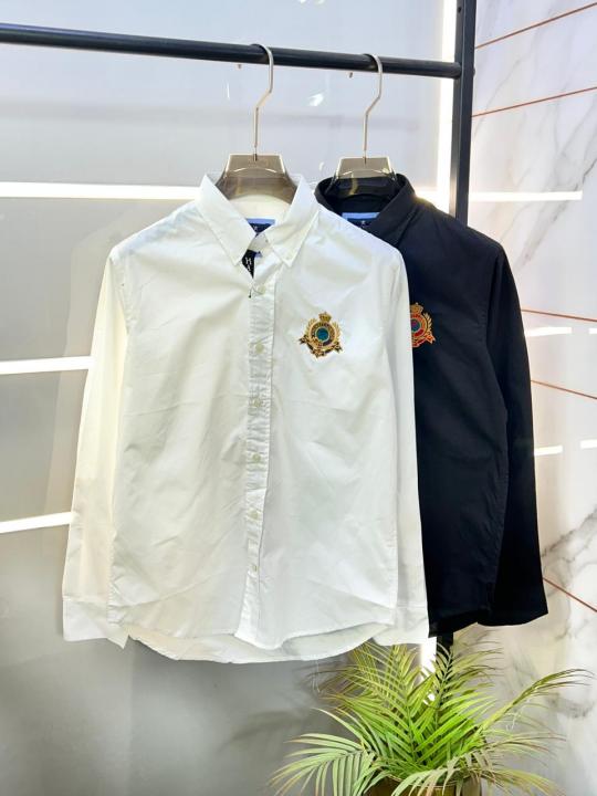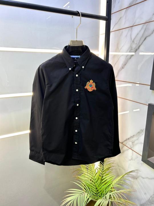 Home Shirts Hacket t Black Embroidery Logo Oxford Lycra Premium Shirts F2738-BL